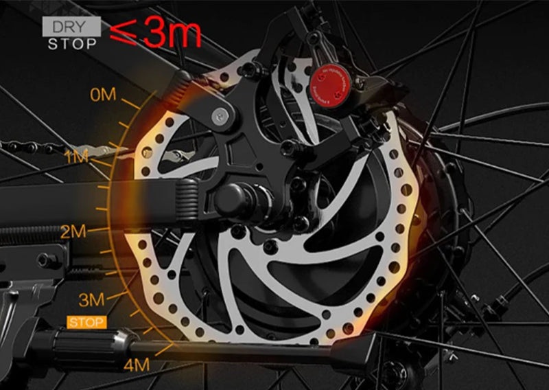 Dotato di freni a disco con spegnimento automatico, sistema doppio di freni a disco anteriori e posteriori, rapida dissipazione del calore, la frenata d'emergenza può anche frenare in modo efficiente e fluido.