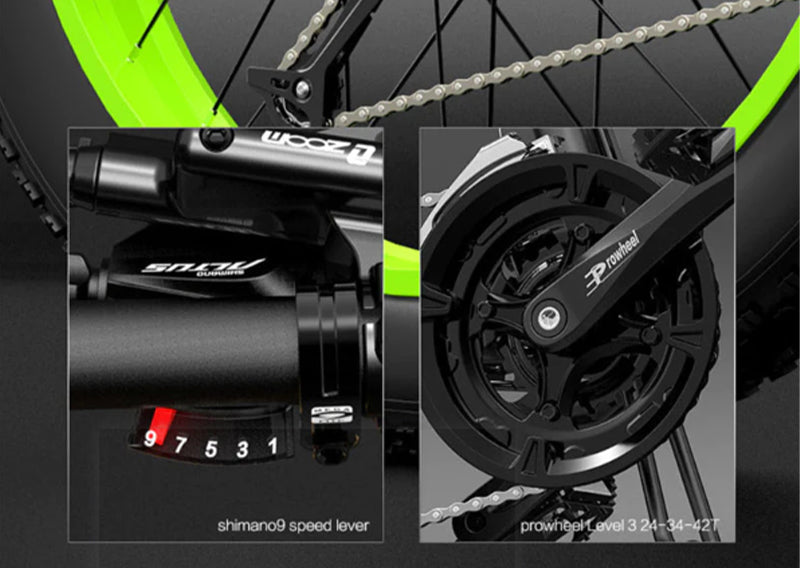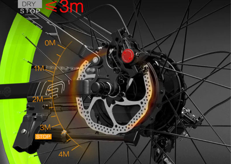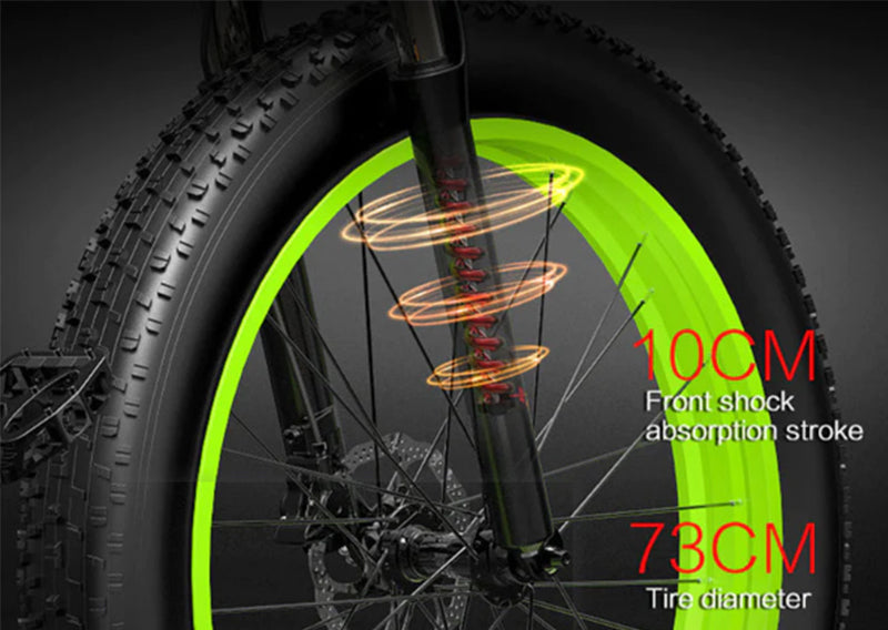 La nostra e-bike è dotata di pneumatici fuoristrada di 26*4.0, che offrono caratteristiche antiscivolo e antivibrazione per un viaggio confortevole. Con una larghezza di 10CM, goditi un'ampia estensione e prestazioni migliorate.