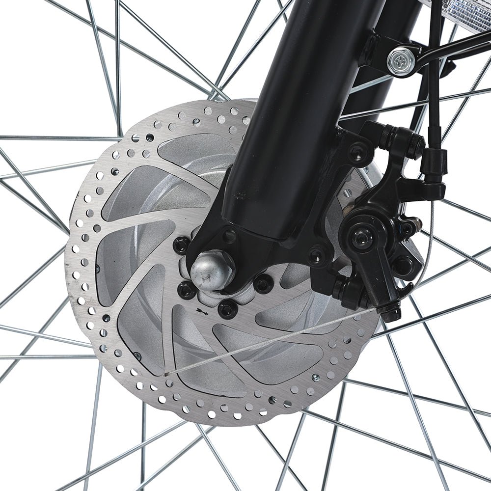 Feature a dual system of front and rear disc brakes that ensures fast heat dissipation and efficient braking. The brake system automatically cuts off the power, and the emergency brake can also brake smoothly and effectively.