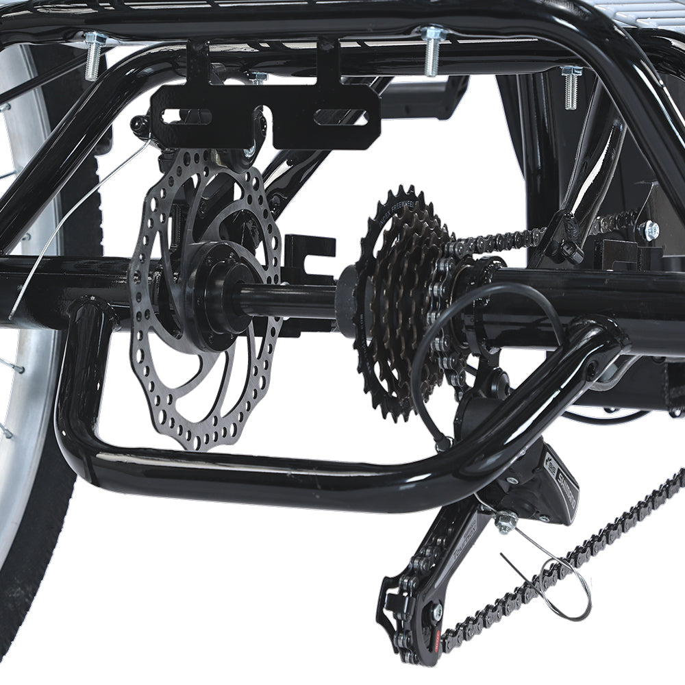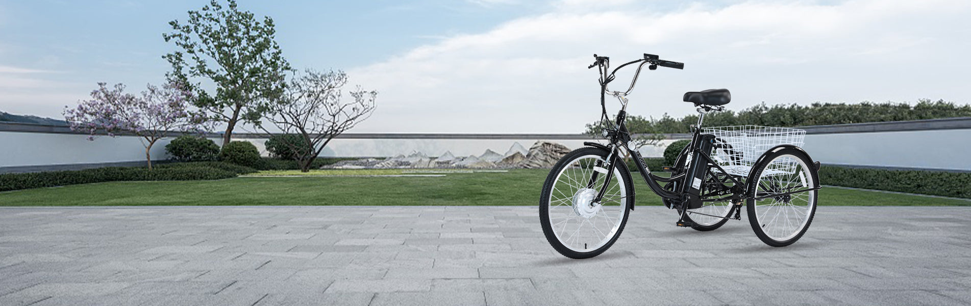 The frame design of an electric tricycle can incorporate features like a comfortable seat position, ergonomic handlebars, more stablity and an adjustable riding cargo. A well-designed frame with a cargo basket can contribute to load more stuff, you can ride to go shipping or enjoy short journey with your lovely pets any time.