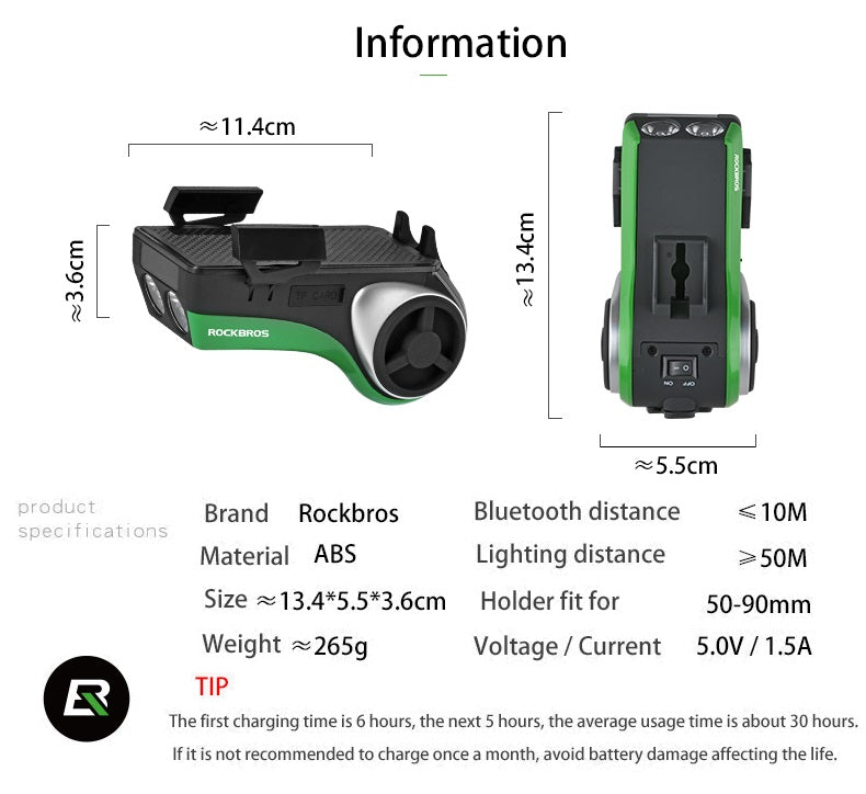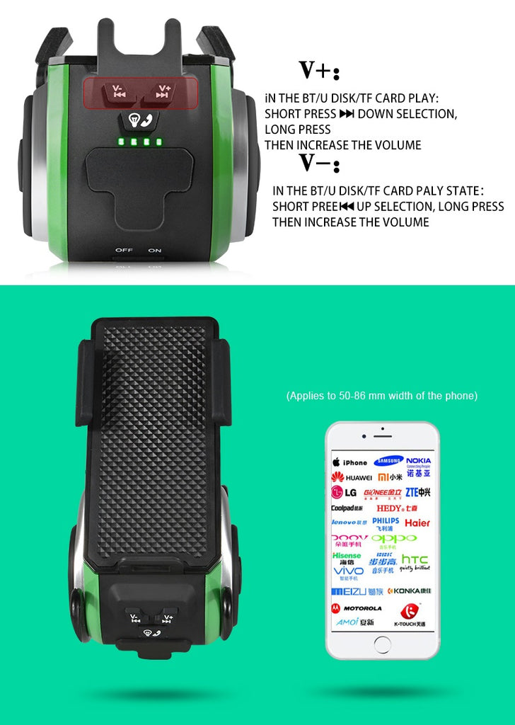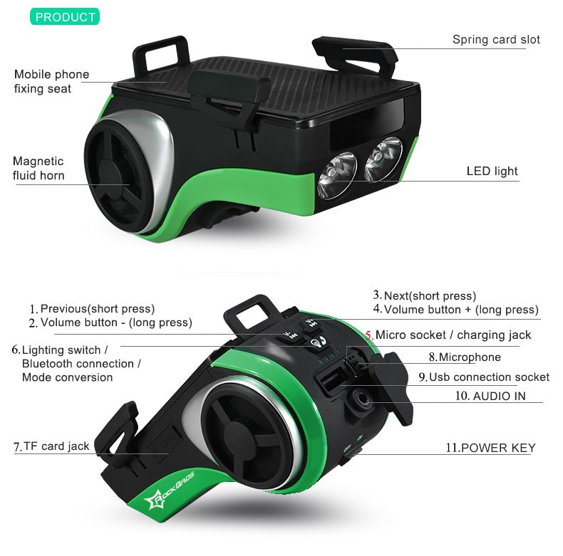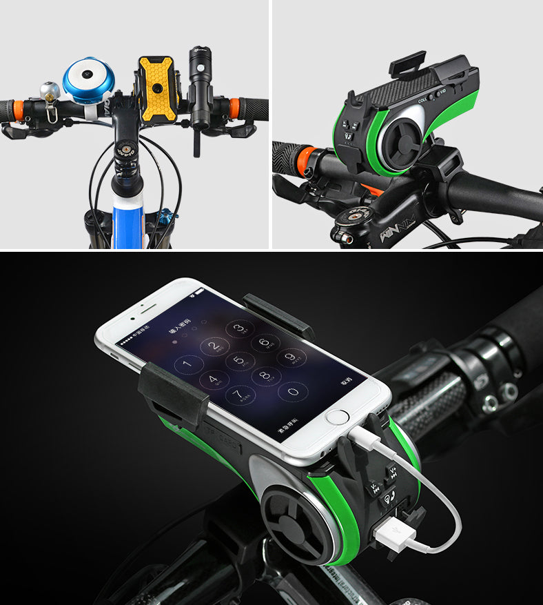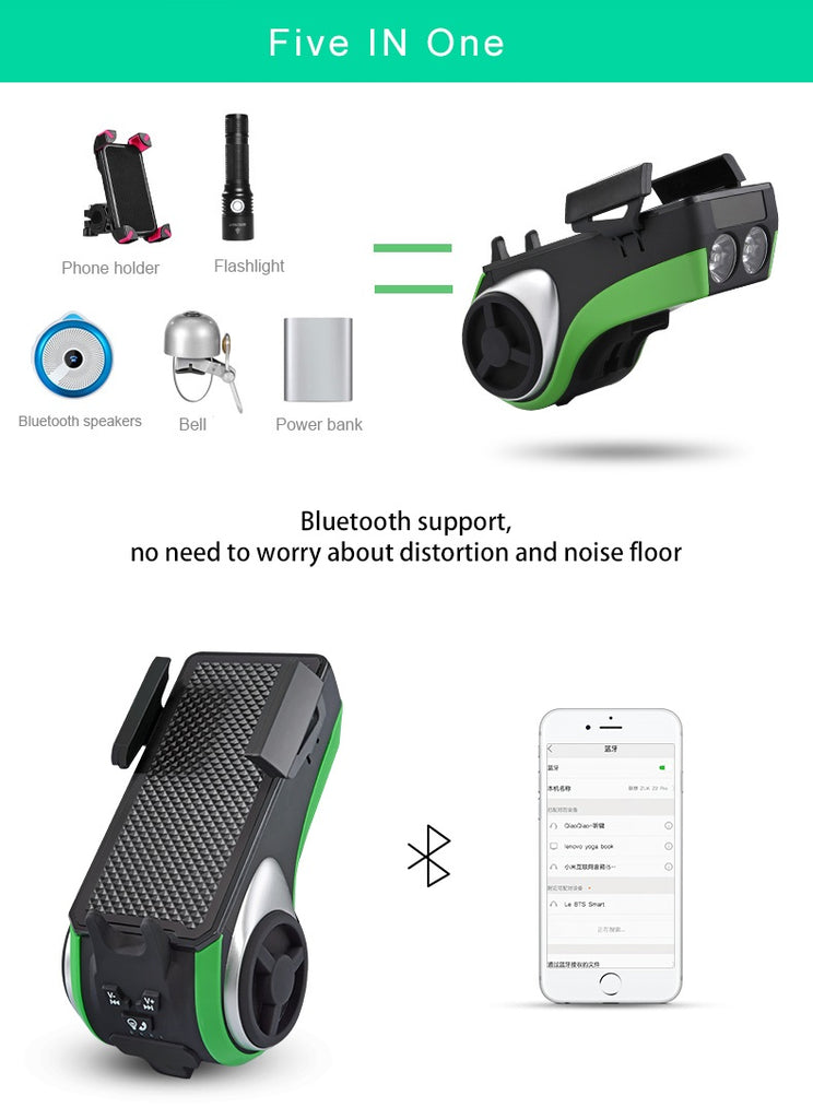 * Bluetooth V4.0 + Speaker+Power Bank+Fietslamp+Fietsbel+Iphone Beugel