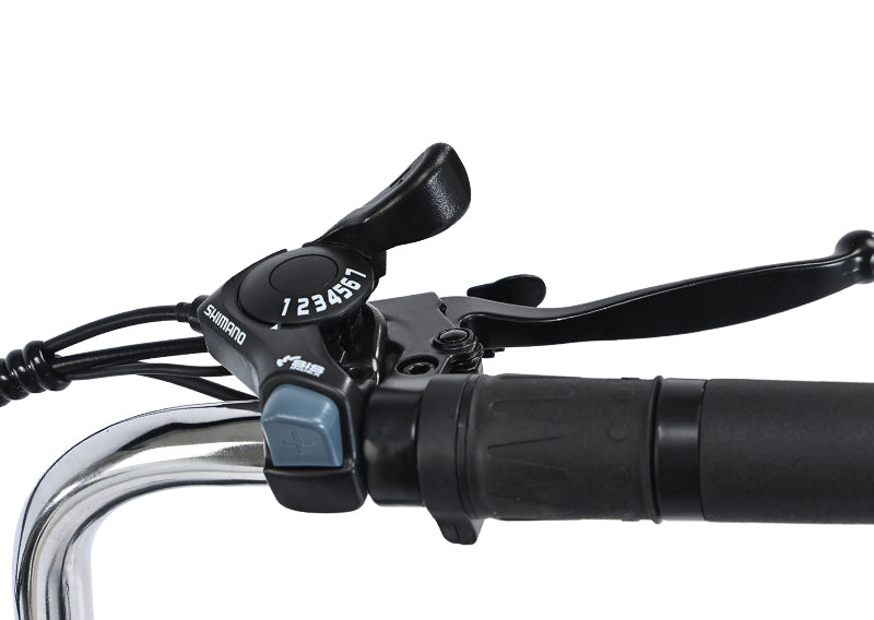 Equipped with an imported Shimano 7-speed shifting system and a customized aluminum alloy crank 52T gear wheel. The classic collocation with rear 7 levels, sis positioning, and durable 7-speed greatly improve the fun of riding.