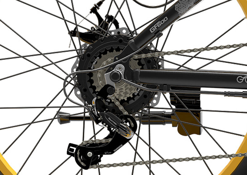 Experience unmatched versatility with theShimano 7-speed gears freewheel, allowing youto shift to a larger cog for uphill riding anddownshift to a smaller cog at high speeds.Combined with the pedal-assist system, you caneasily adjust your speed to suit your journey.