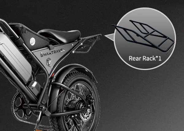 The solid rear rack provides stability and reliability for carrying cargo luggage with ease, supporting a maximum load of 150KG.